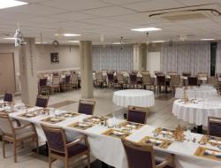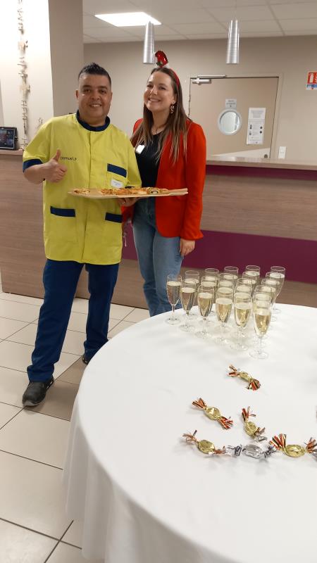 Pour les fêtes de Noël à la résidence LA PALMERAIE, le restaurant a revêtu ses plus beaux atouts. Les tables furent dressés par Taoufik et Célia. des sets de tables dorés ont été installés et des serviettes aux couleurs de Noël ont été proposées aux résidents